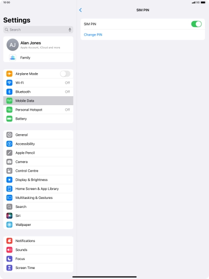 Press the indicator next to "SIM PIN" to turn the function on or off.
