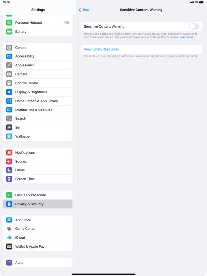 Press the indicator next to "Sensitive Content Warning" to turn the function on or off.