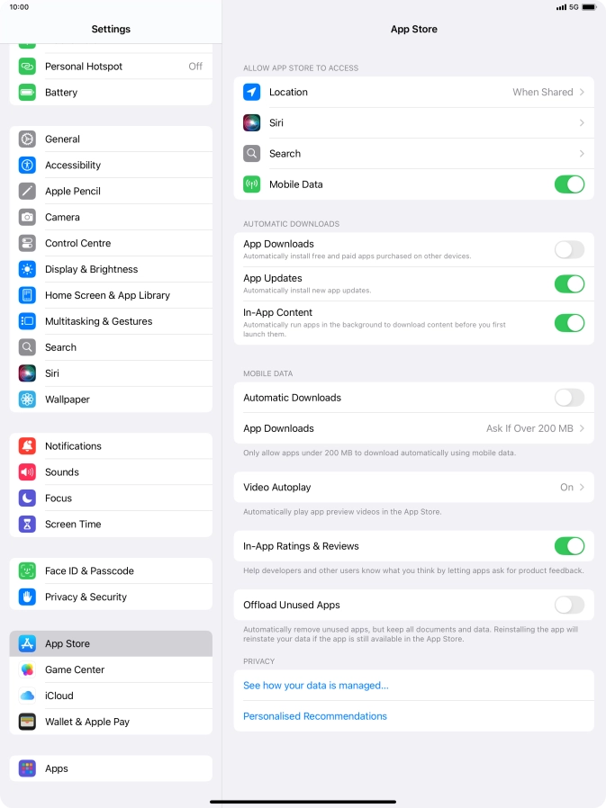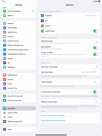 2 Turn automatic synchronisation of apps and app content on or off