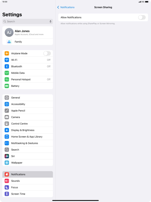 You can turn display of notifications when using SharePlay or Screen Mirroring on or off.