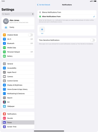 Press the indicator next to "Time-Sensitive Notifications" to turn display of timed notifications on or off when Do Not Disturb is turned on.