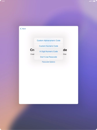 Follow the instructions on the screen to turn on use of lock code or press Don't Use Passcode.