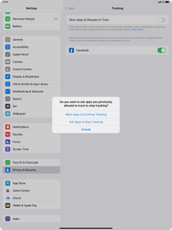 Press the indicator next to "Allow Apps to Request to Track" to turn the function on or off.