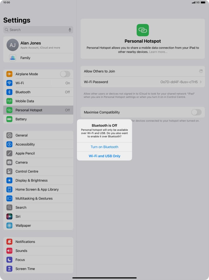 Find the list of available Wi-Fi networks and select the personal hotspot you've just set up.
