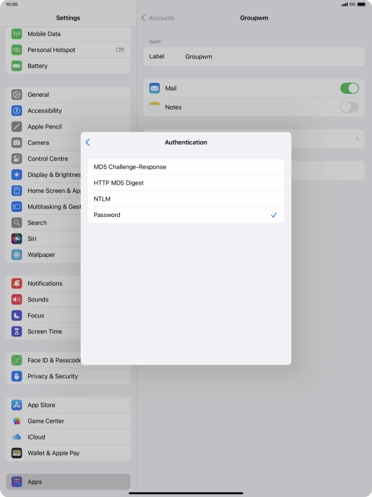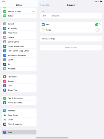 Press the required email account and follow the instructions on the screen to select settings for the specific account.
