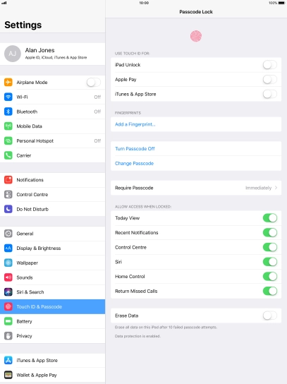 4. 4. Turn off use of lock code
