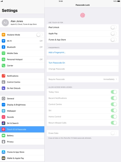 Press Touch ID & Passcode.