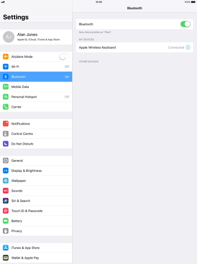 Press the required Bluetooth device and follow the instructions on the screen to pair the device with your tablet.