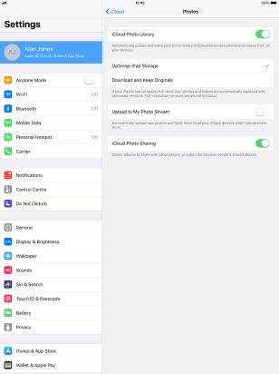 You can synchronise the contents of your tablet using iCloud enabling you to access the contents from different devices or restore them if you lose your tablet. To use iCloud, you need to activate your Apple ID.