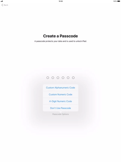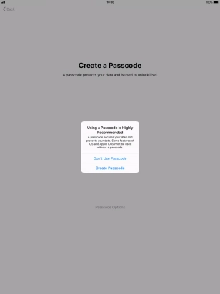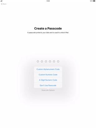 Follow the instructions on the screen to turn on use of lock code or press Don't Use Passcode.