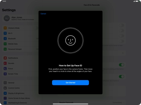 Press Get Started and follow the instructions on the screen to set up Face ID.
