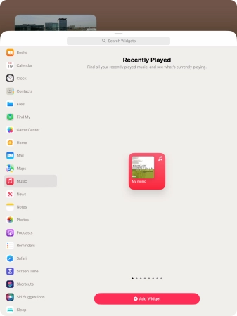 If the required widget is not displayed on the list, press the search field and follow the instructions on the screen to find the required widget.
