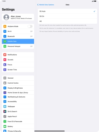 To turn on automatic switch between 5G and 4G, press 5G Auto.
