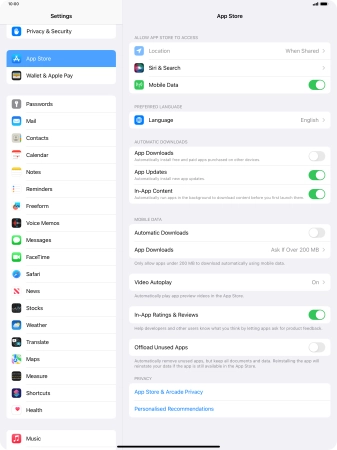 Press the indicator next to "App Downloads" to turn the function on or off.