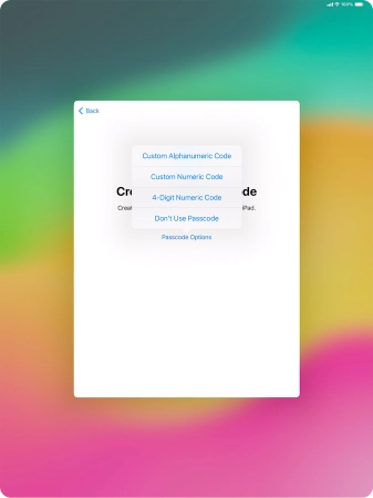 Follow the instructions on the screen to turn on use of lock code or press Don't Use Passcode.