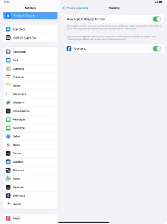 Press the indicator next to "Allow Apps to Request to Track" to turn the function on or off.