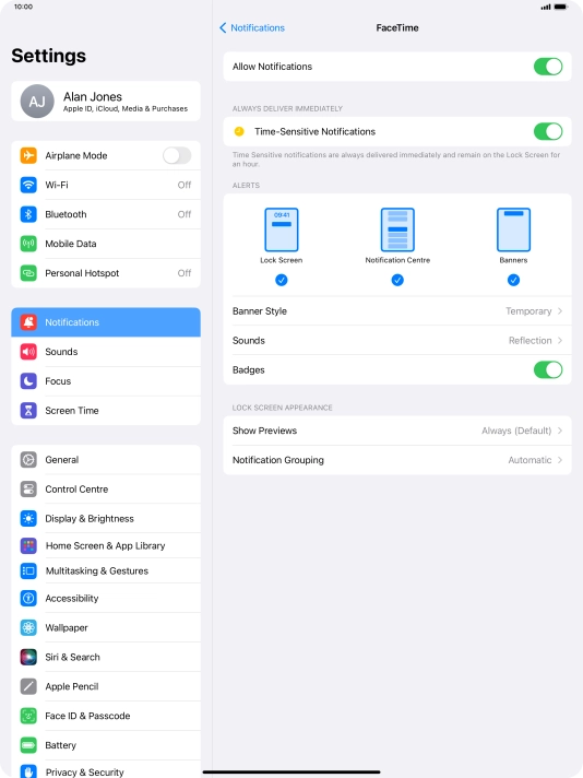 Press the indicator next to "Time-Sensitive Notifications" to turn the function on or off.