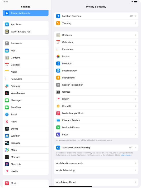 Press Privacy & Security.