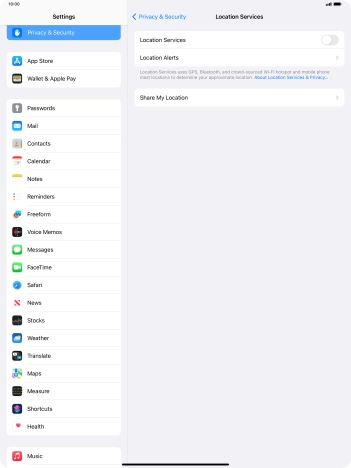 Press the indicator next to "Location Services" to turn the function on or off.