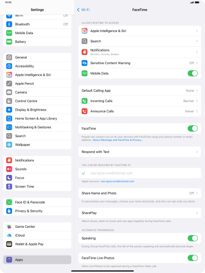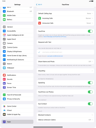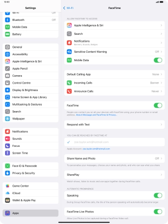 Select FaceTime settings