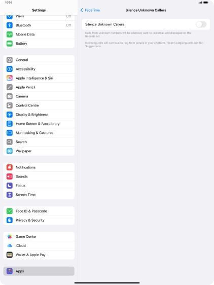 Press the indicator next to "FaceTime" to turn the function on or off.