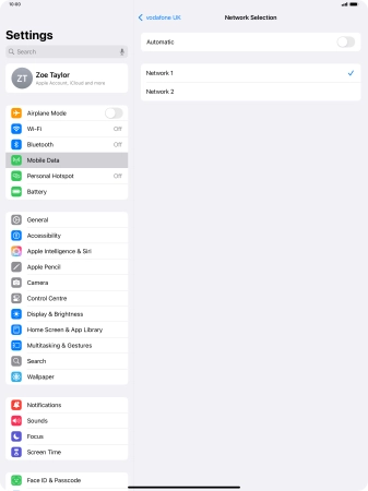 Press the indicator next to "Automatic" to turn automatic network selection on or off.