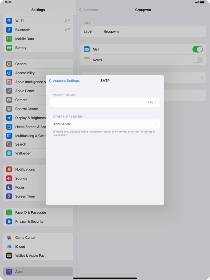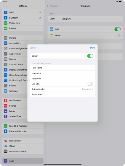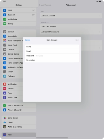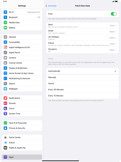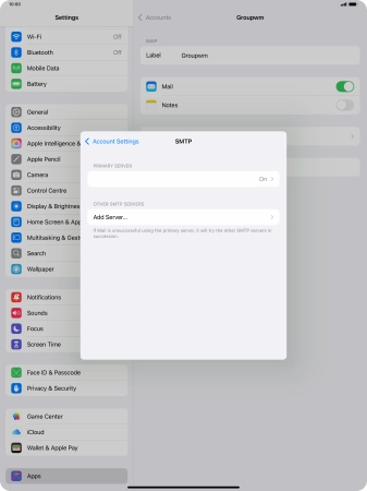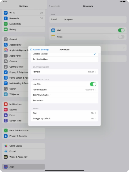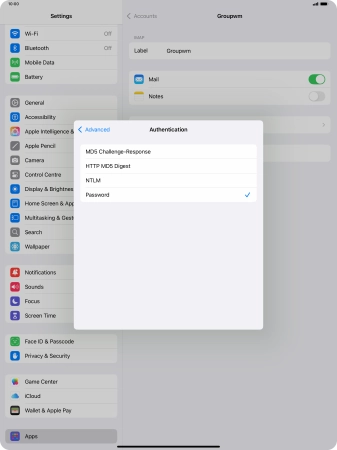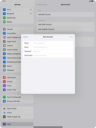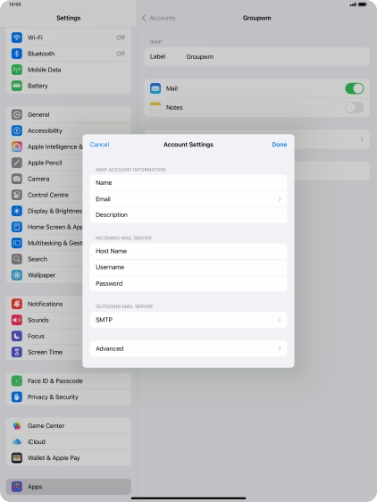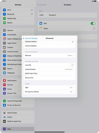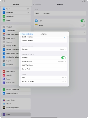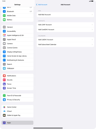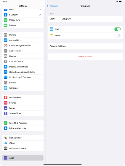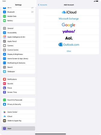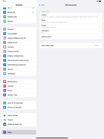 Press the required email account and follow the instructions on the screen to select settings for the specific account.