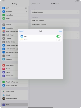 You can set up your tablet to send and receive email messages from your email accounts. Using IMAP, your email messages are kept on the server and are synchronised between all of your devices. You're then able to access your email messages from other devices. To set up your tablet for IMAP email, you need to set up your tablet for internet.