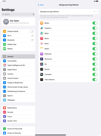 2. 2. Turn background refresh of apps on or off
