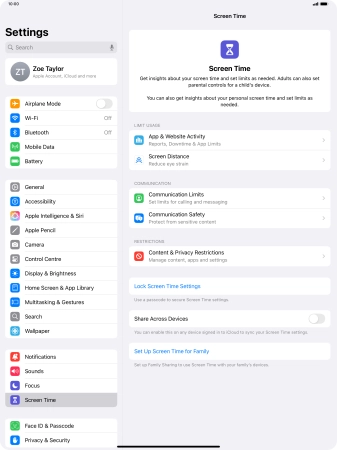 Press Screen Time and optionally select the required member of your family group.