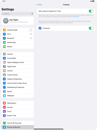 Press the indicator next to "Allow Apps to Request to Track" to turn the function on or off.