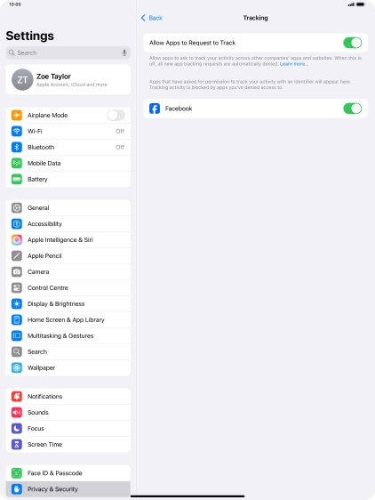 Press the indicators next to the required apps to turn tracking request for each app on or off.