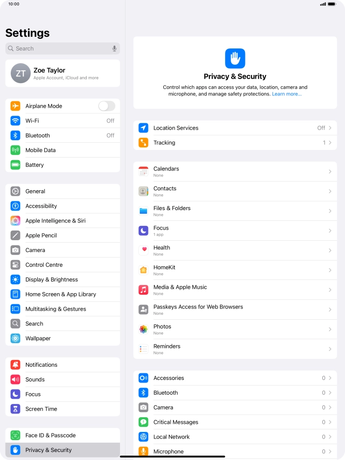 Press Privacy & Security.