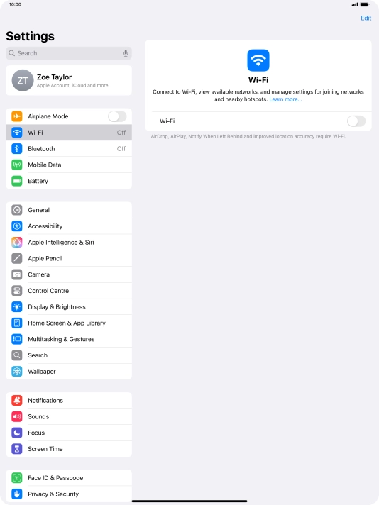Press the indicator next to "Wi-Fi" to turn on the function.