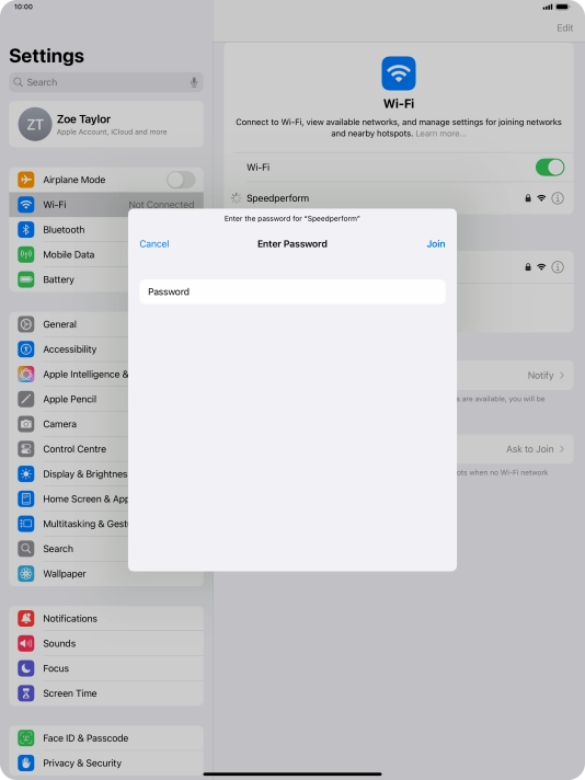 Press the required Wi-Fi network and key in the password for the Wi-Fi network.