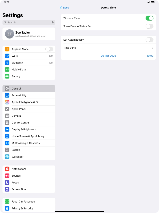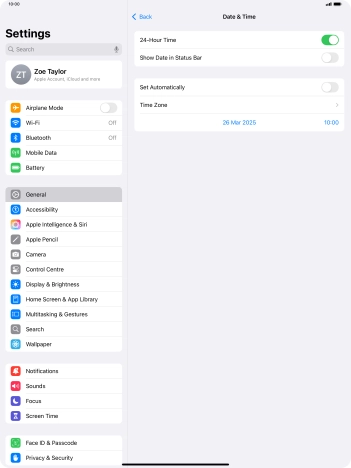 2 Turn on automatic update of time zone, time and date.