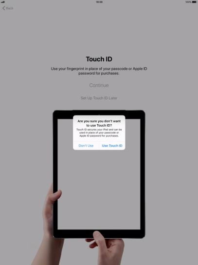 Follow the instructions on the screen to turn on use of Touch ID or press Set Up Touch ID Later.