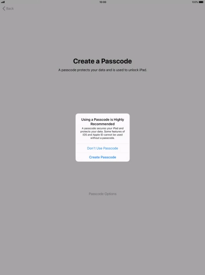 Follow the instructions on the screen to turn on use of lock code or press Don't Use Passcode.