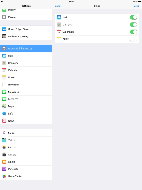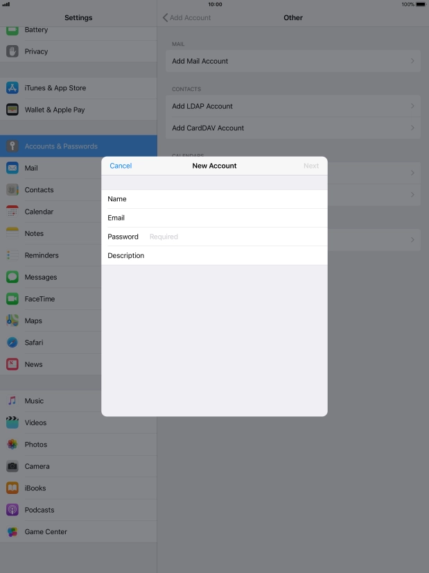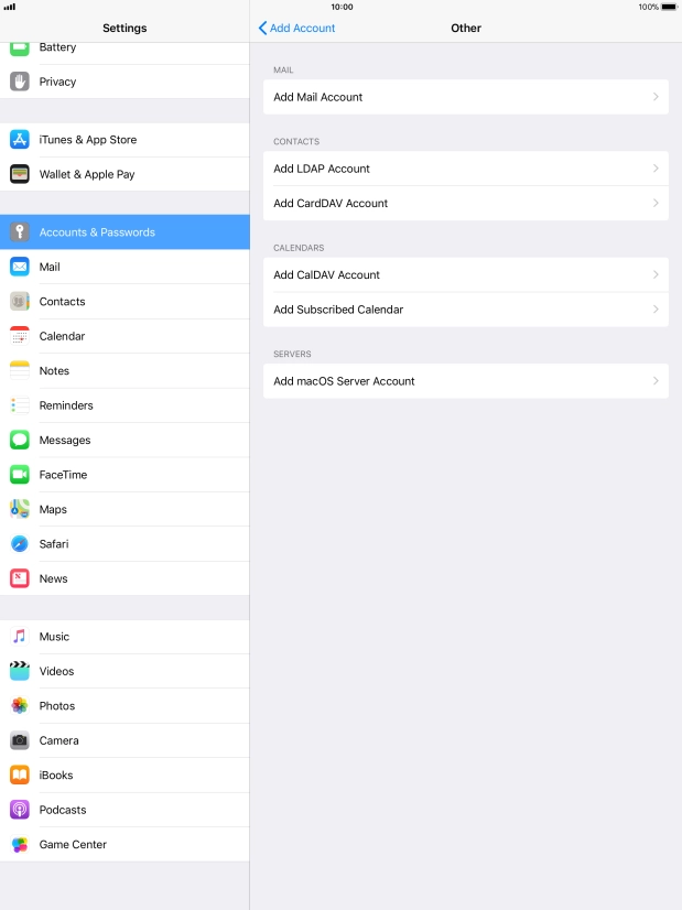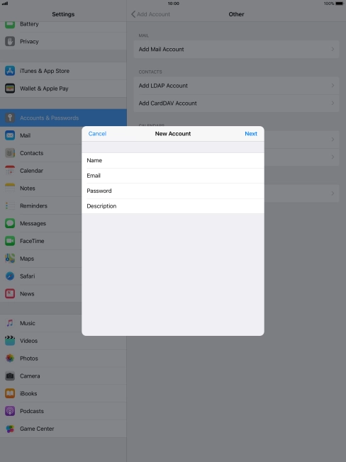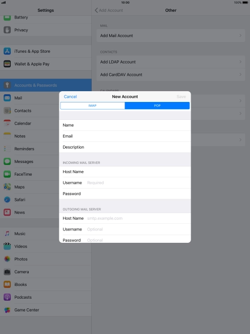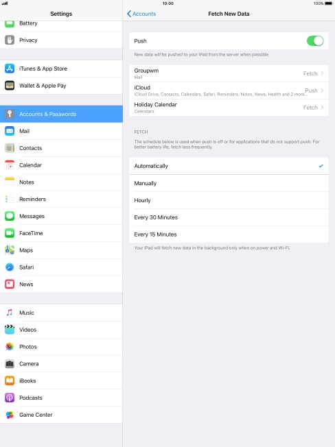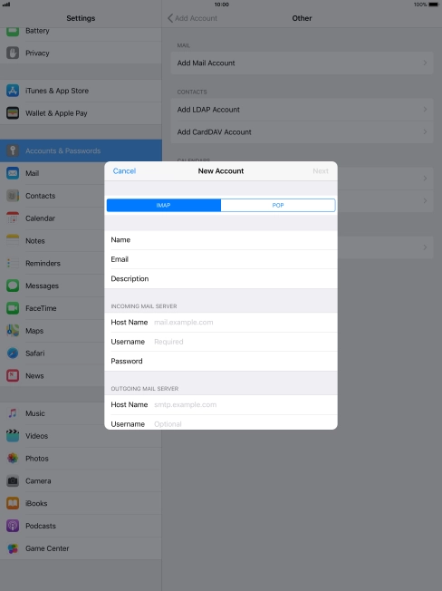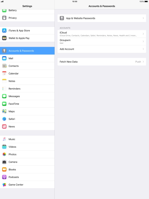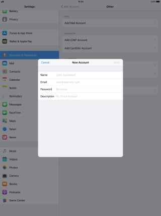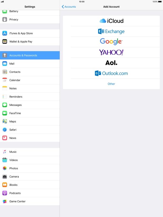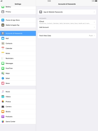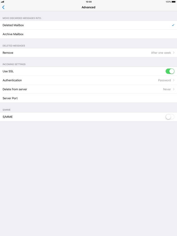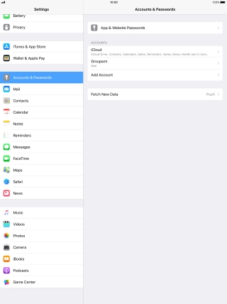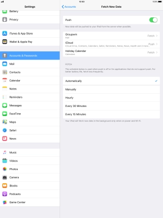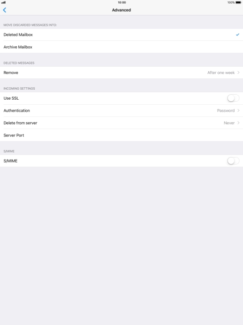 Press the required email account and follow the instructions on the screen to select settings for the specific account.