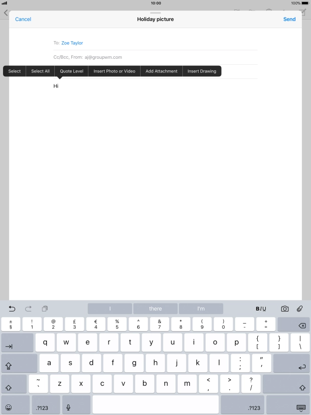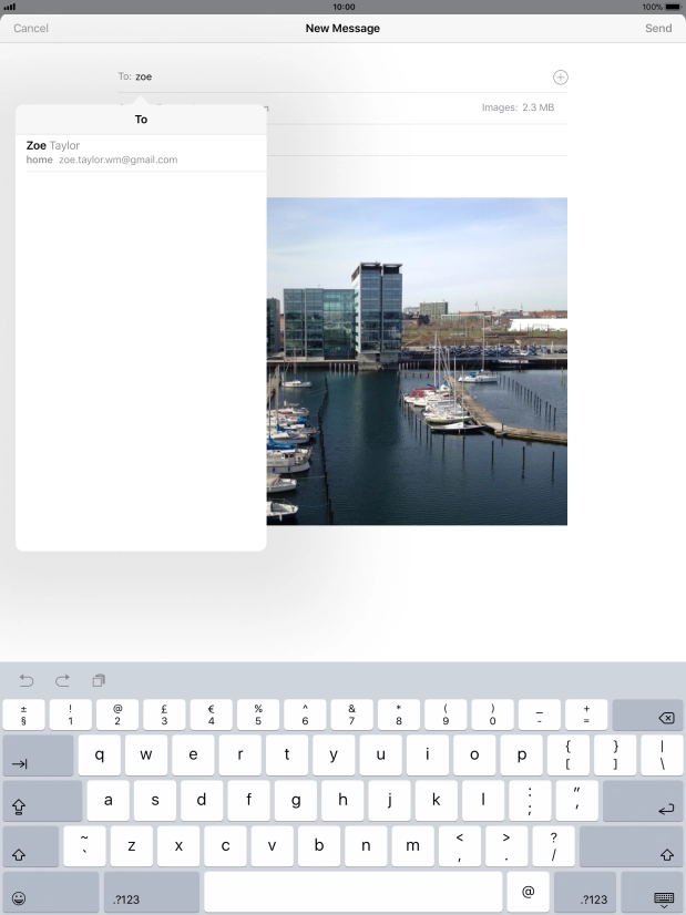 Press the text input field and write the text for your email message.