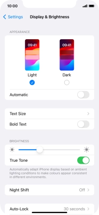 If you turn on the function, press Options and follow the instructions on the screen to select the required period of time for Dark Mode.