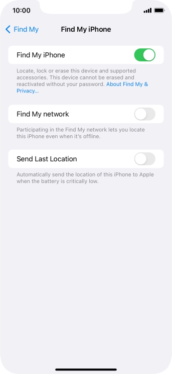 Select settings for Find My iPhone