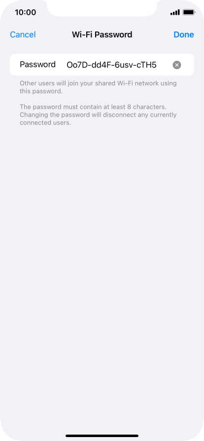 2 Key in the password for personal hotspot
