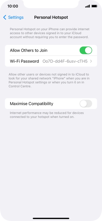 Press Personal Hotspot.