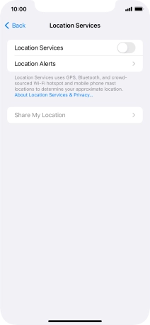 Press the indicator next to "Location Services" to turn the function on or off.