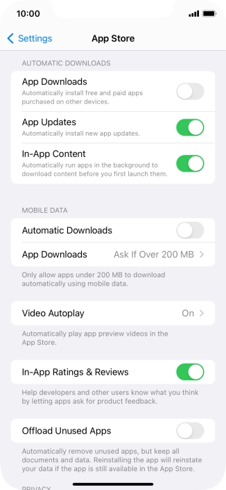 Press the indicator next to "Automatic Downloads" to turn the function on or off.