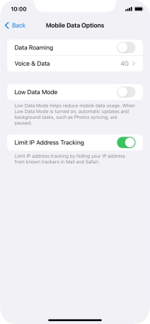Press the indicator next to "Low Data Mode" to turn the function on or off.