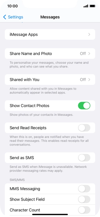 Press the indicator next to "iMessage" to turn on the function.