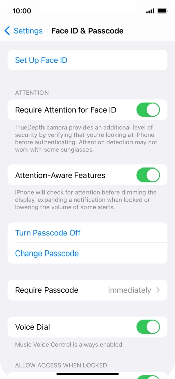 Press Face ID & Passcode.