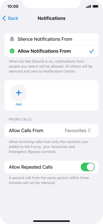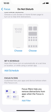 Press Add Schedule and follow the instructions on the screen to select settings for automatic activation of Do Not Disturb.